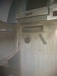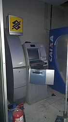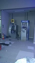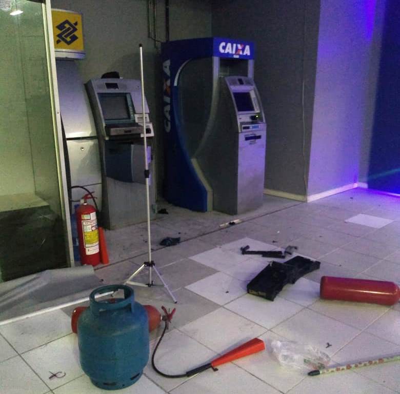 Um botijão de gás foi encontrado no local e pode ter sido usado pelos bandidos para tentar danificar a máquina.