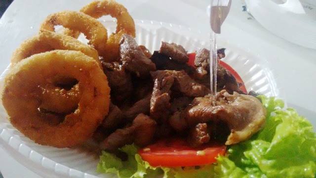 Picanha em tiras, macia e suculenta, com acompanhamento de rodelas de cebolas à milanesa. Esse petisco, da Casa da Picanha, foi criado para o Festival de Bar em Bar promovido pela Abrasel, que começou muito bem na sexta-feira (13), no estacionamento do Maceió Shopping, com preço promocional de R$ 10,00 cada uma das porções. A feira do Bar em Bar acontece até domingo (15).