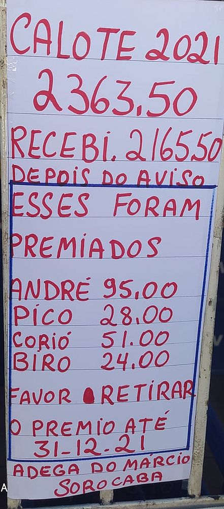 Um bar na zona norte de Sorocaba (SP) ficou conhecido nas redes sociais após o dono do estabelecimento instalar uma placa com uma lista dos "caloteiros premiados de 2021", na última semana.