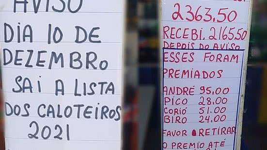Um bar na zona norte de Sorocaba (SP) ficou conhecido nas redes sociais após o dono do estabelecimento instalar uma placa com uma lista dos "caloteiros premiados de 2021", na última semana.