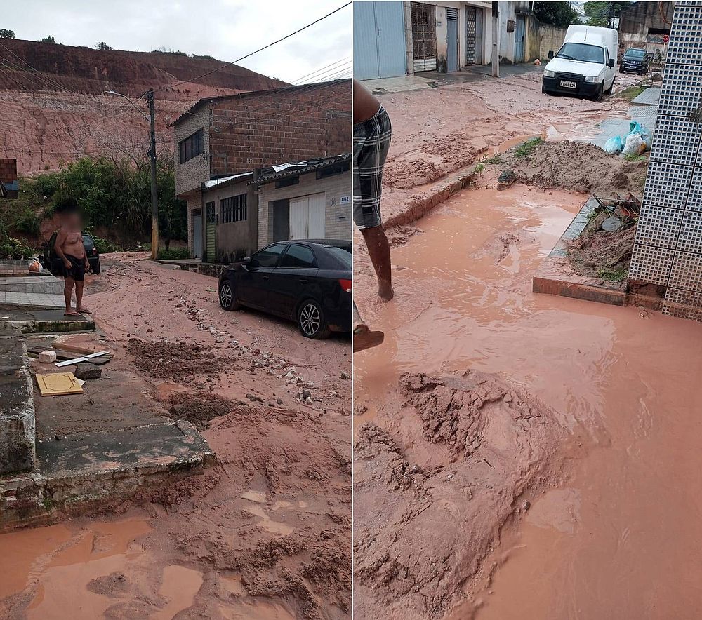 No bairro de Cruz das Almas, a terra de uma barreira invadiu as ruas após deslizamento. A imagem abaixo mostra a lama que ficou por cima do asfalto e os condutores de veículos precisaram ter cuidado redobrado durante passagem pela área.