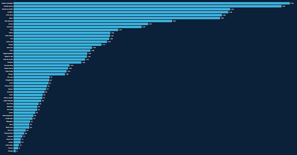 De acordo com o relatório, o bairro Cidade Universitária tem 5.389 casos confirmados de Covid-19. Na sequência, Benedito Bentes aparece com 5.226, seguido pelo Tabuleiro do Martins, com 4.225, Jacintinho (4.189), Ponta Verde (4.065) e Jatiúca, com 4.028. Confira a lista completa abaixo: