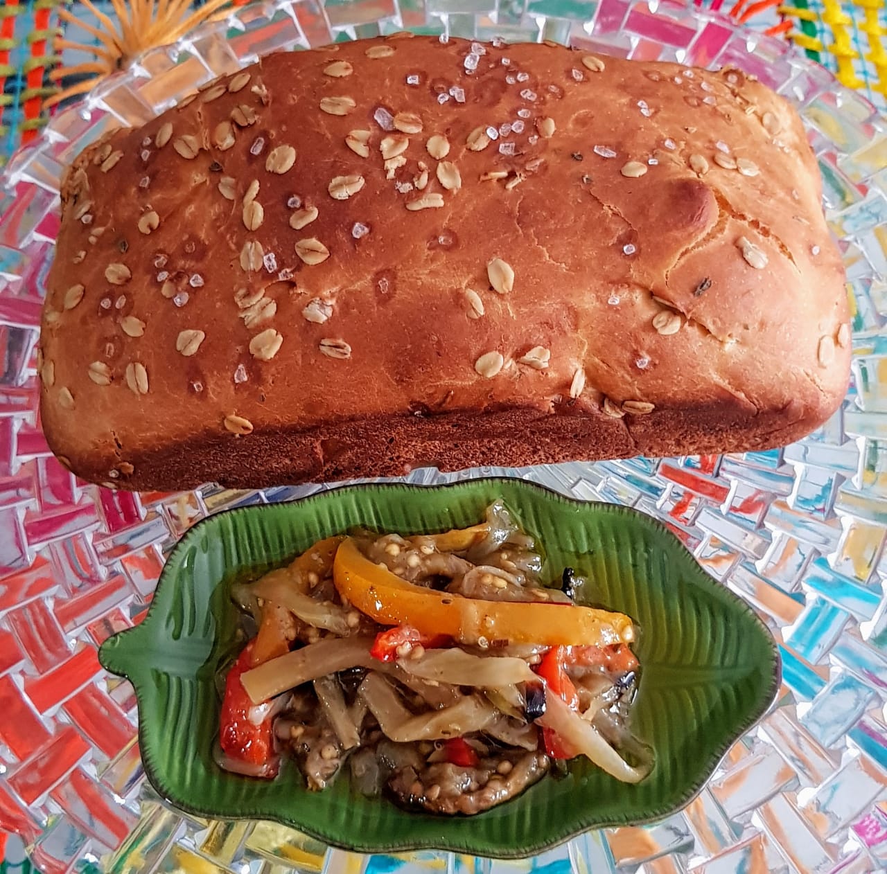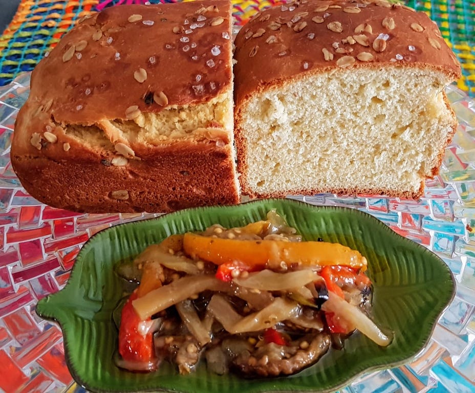 Caponata de berinjela e pão caseiro da jornalista Elen