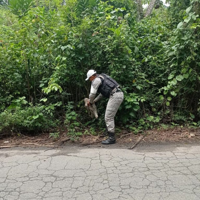 Um bicho-preguiça foi resgatado ao atravessar uma pista, na manhã deste sábado (30), entre os municípios de Marechal Deodoro e Pilar, na Região Metropolitana de Maceió.