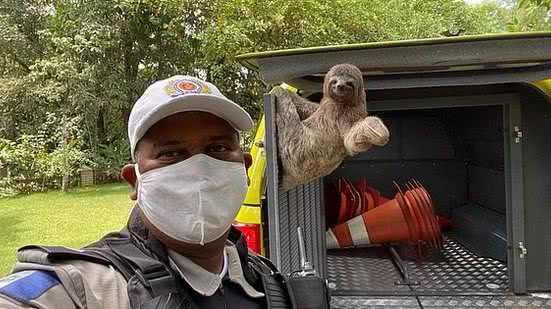 Militares do Batalhão de Polícia Rodoviária resgataram, na última sexta-feira (19), um bicho-preguiça. Os policiais realizavam rondas na AL-101, entre as cidades de Maceió e São Luiz do Quitunde, quando encontraram o animal às margens da rodovia.
