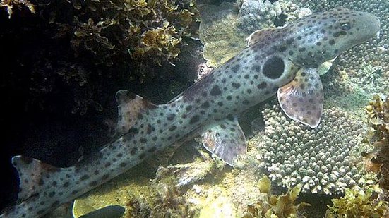 A espécie do tubarão, conhecida como Tubarão-epaulette ou Tubarão das dragonas, é a Hemiscyllium ocellatum, que é comum na Indonésia. Podendo alcançar quase um metro de comprimento, o animal apresenta manchas castanhas e pretas por seu corpo e tem como alimento predileto caranguejos e outros invertebrados que são caçados quando o tubarão está em terra.