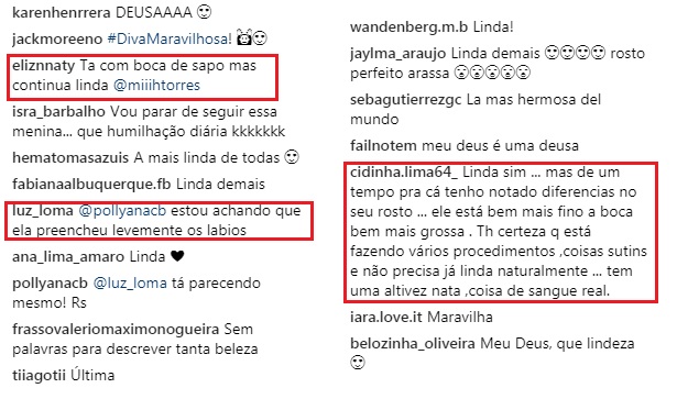 Mas para muitos seguidores um outro detalhe chamou mais atenção: a boca da atriz. Nos comentários, muitos apostam que a ruiva tenha feito preenchimento labial.