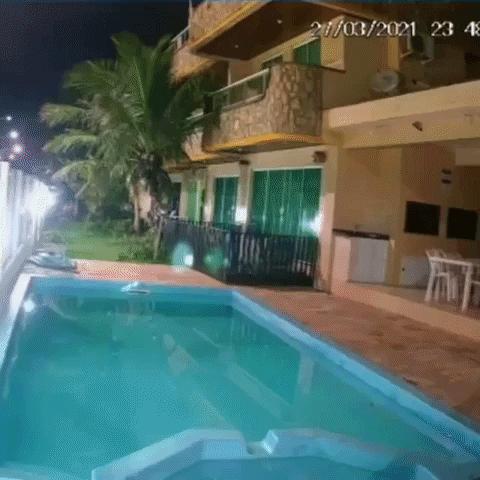 O animal aparentava estar visivelmente cansado ao cair na piscina e dali não conseguiu mais sair.