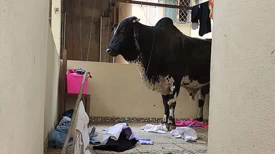 Moradores de um condomínio do bairro Primavera, em Timóteo, foram surpreendidos, na manhã desse domingo (13) com uma situação curiosa. Um boi caiu no terraço do prédio.