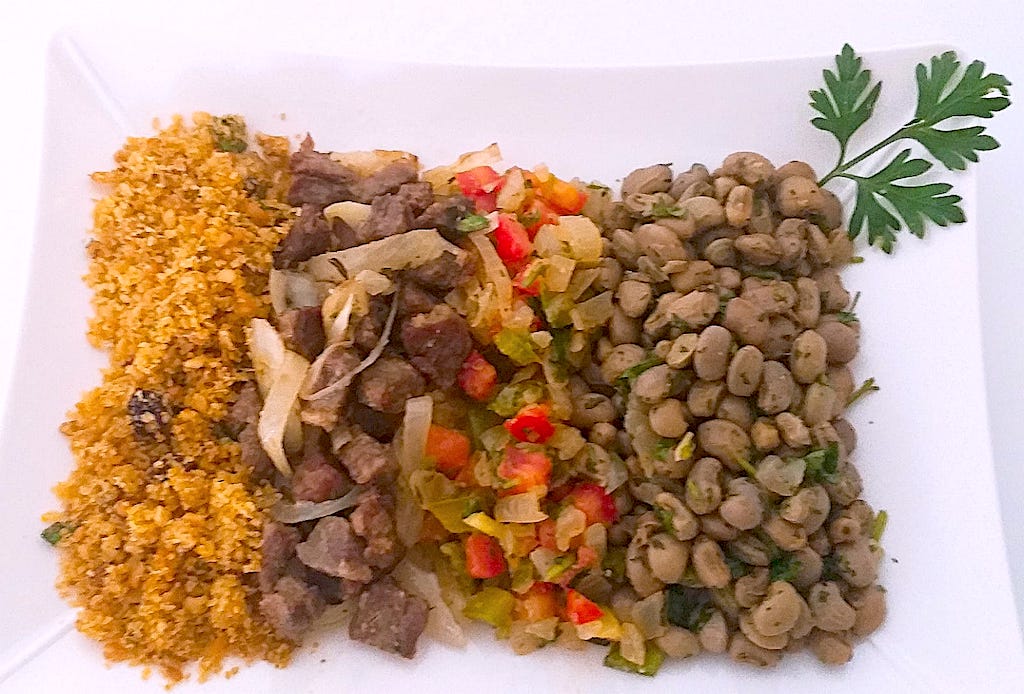Na coxinha de galinha, nada de farinha de trigo, a macaxeira é quem manda bem nas panelas, também entra farinha de amaranto e frango na própria massa, recheada com a ave refogada. Já o arrumadinho tem o tradicional feijão com vinagrete, carne de sol acebolada, manteiga (hehe) e a novidade é farofa funcional com farelo de aveia, castanhas e passas.