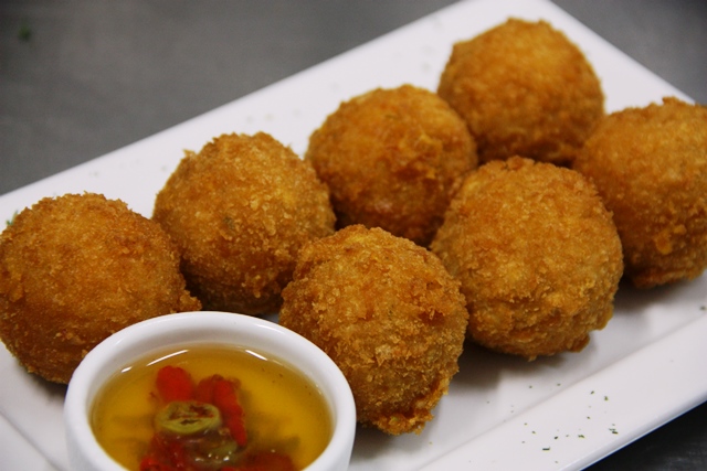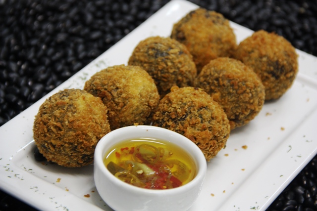 Bolinho de bobó – Crocante e bem macio por dentro, o bolinho de bobó mantém o sabor tradicional da receita com creme de macaxeira no caldo do crustáceo e com pedacinhos de camarão. O molho de pimenta é um mistura da malagueta, dedo de moça e pimenta de cheiro no azeite. Nota 10. Incrementa o sabor.