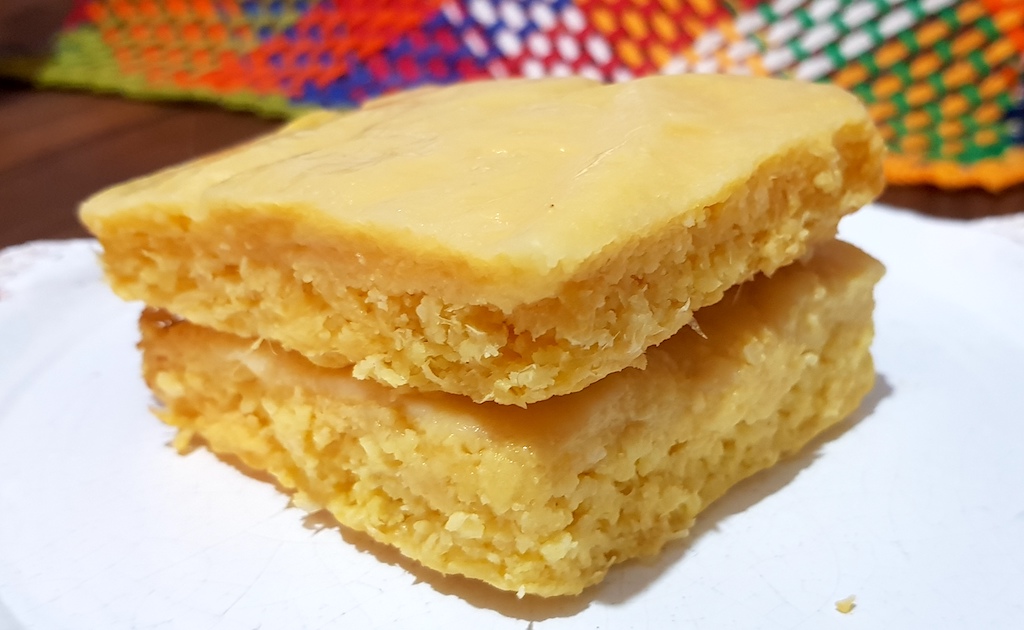 Para quem tem restrições de açúcares, glúten e lactose, a Juliana também tem receita. No lugar da farinha de trigo entra a farinha de arroz, do açúcar, o adoçante culinário, e ela troca o leite de gado pelo de coco ou suco da fruta. Eu provei o diet e sem glúten, a grata surpresa é a textura, bem macio. Já o vegano segue a regra de nada de origem animal, é só encomendar.