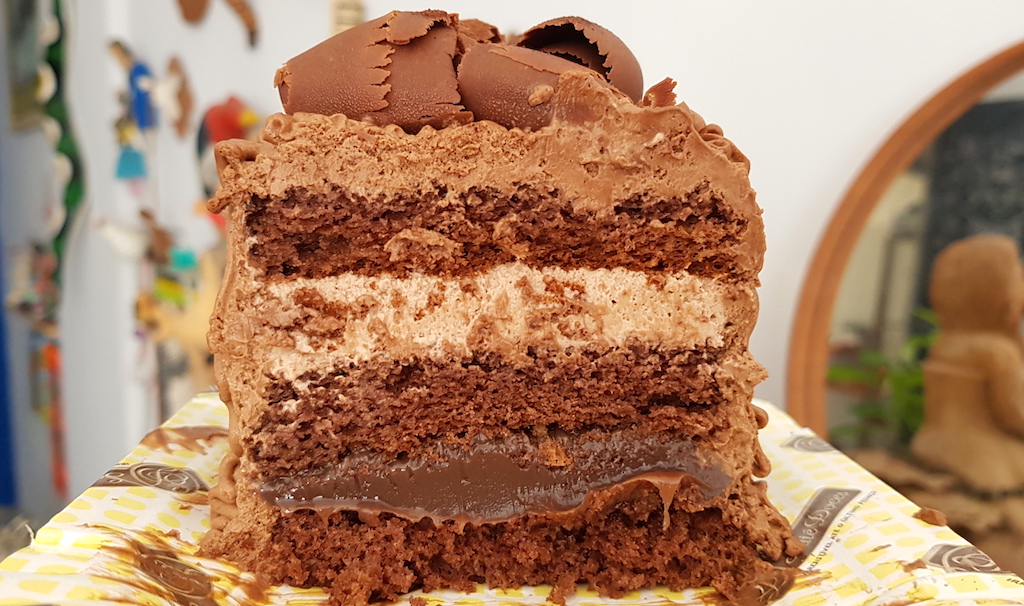 A novidade é uma deliciosa massa de chocolate com recheios de brigadeiro de Nescau e de mousse de leite Ninho e Nescau, cobertura de mousse de chocolate com raspas de chocolate ao leite e Nescau em pó. E geladinho, é uma benção. Até 31 de outubro o preço do quilo é promocional.