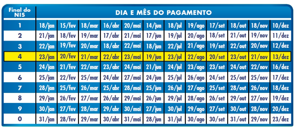 Para saber em que dia sacar o benefício, a família deve observar qual é o último algarismo do NIS impresso no cartão. Aquelas que têm cartões terminados em ‘1’ recebem no primeiro dia do calendário de pagamento, os terminados em ‘2’ no segundo dia e assim por diante, segundo o cronograma de escalonada nos últimos 10 dias úteis de cada mês.