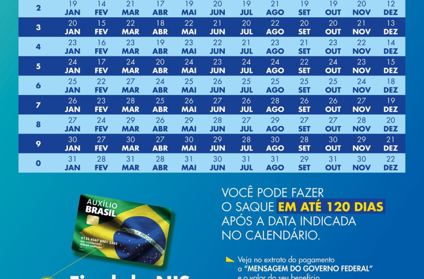 De acordo com o calendário, os pagamentos dos programas seguem até o dia 30 deste mês. Para saber em que dia sacar o benefício, a família deve observar qual é o último algarismo do NIS, que está impresso no cartão do Bolsa Família.