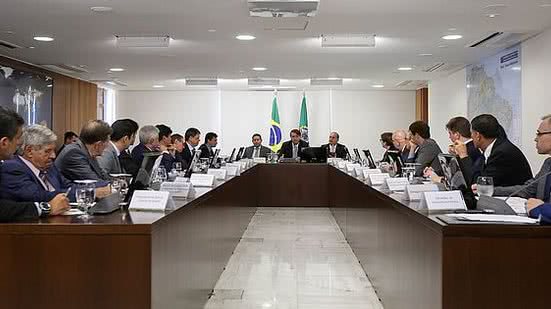 Mais cedo, antes da cerimônia, o presidente Jair Bolsonaro comandou a primeira reunião ministerial após ter alta do Hospital Albert Einstein, em São Paulo, na última quarta-feira (13). Na conversa com o primeiro escalão de seu governo, Bolsonaro e sua equipe econômica detalharam a proposta de reforma da Previdência, às vésperas da entrega do texto ao Congresso.
