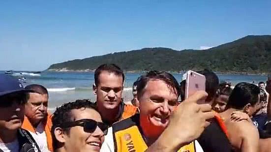 O presidente Jair Bolsonaro fez uma transmissão ao vivo em suas redes sociais em uma praia do Guarujá (SP) neste domingo pela manhã. Na transmissão, Bolsonaro aparece de colete salva-vidas, caminhando pela praia e posando com apoiadores que formaram uma pequena aglomeração para cortejá-lo. Todos estavam sem máscara.