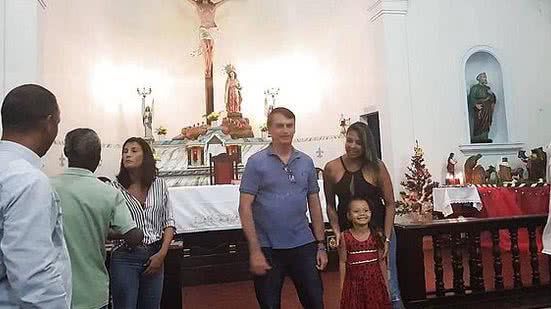 Em fotos e vídeos divulgados pela sua assessoria de imprensa, Bolsonaro aparece sentado em um dos bancos da igreja e posa para fotos com outros fiéis. Após a missa, ele lanchou com militares na restinga. A igreja é frequentada pelos militares em serviço no local.
