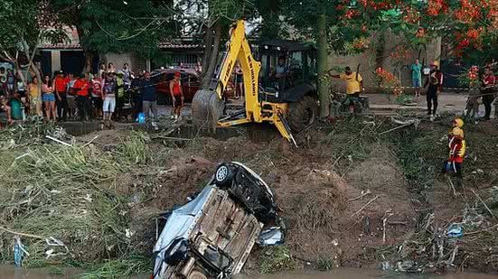 O Corpo de Bombeiros continua nas buscas por uma mulher que desapareceu no Rio Botas, no Rio de Janeiro. O veículo foi arrastado pela enxurrada em Belford Roxo na noite de sábado (13). O carro foi encontrado e retirado do rio.