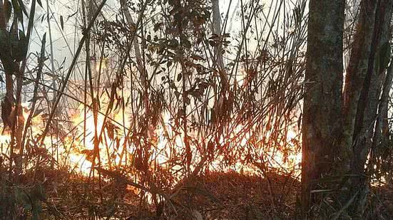 O incêndio começou ontem e os bombeiros foram acionados às 10h32. Em princípio foi para o local uma equipe com quatro militares, mas diante da extensão foi necessário fazer um reforço, incluindo os nove brigadistas do ICMBio. As equipes tiverem o apoio de quatro viaturas dos bombeiros e uma do Instituto. O combate foi feito em duas frentes. Uma para evitar que o fogo atingisse as casas na parte urbana e a outra diretamente na mata com o uso de abafadores.