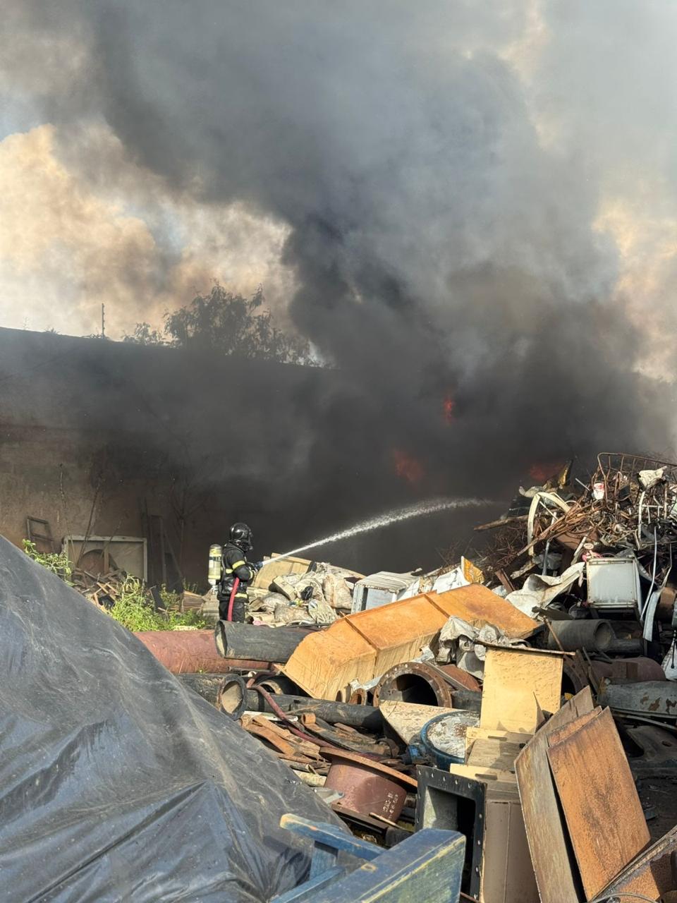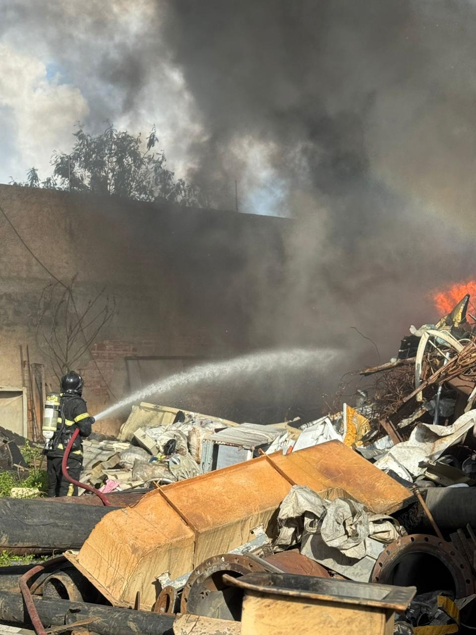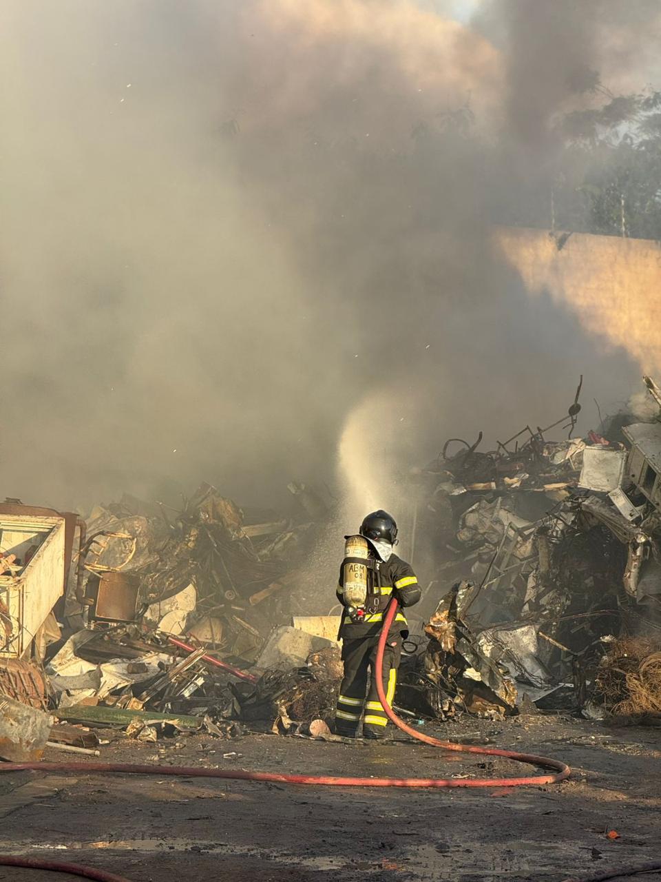 Imagens registradas na região mostram a fumaça preta e densa sobre os entulhos do ferro-velho.