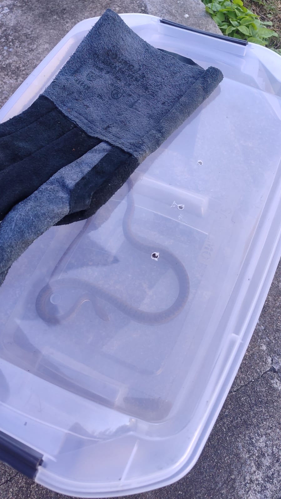 "A guarnição chegou ao local e realizou com sucesso o resgate do animal. A equipe removeu a cobra-cipó-marrom com segurança e a transportou para soltura em habitat natural adequado.