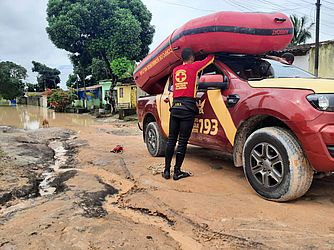 De acordo com os Bombeiros, quatro famílias foram resgatadas com a ajuda do bote de salvamento e deslocadas para áreas seguras. Veja as imagens: