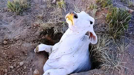 O Corpo de Bombeiros foi acionado para resgatar uma vaca que caiu em um buraco, no sítio Bom Jardim, zona rural de Arapiraca, no Agreste de Alagoas, nesse domingo (10).