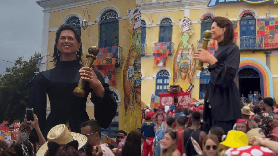 Em meio ao clima de festa pela indicação ao Oscar, Fernanda Torres ganhou mais uma homenagem: um boneco gigante no Carnaval de Olinda, em Pernambuco.