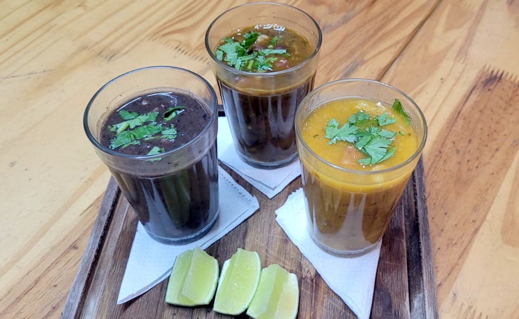 Caldinhos: Feijoada, dobradinha e amendoim com linguiça