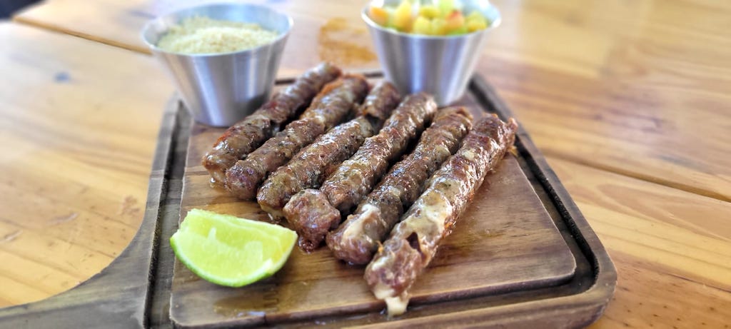 Linguiça de cordeiro recheada com queijo coalho