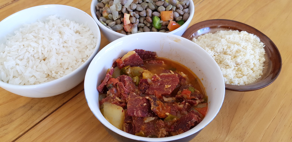 Guisado do Nado: linguiça, charque e costela de boi com pirão