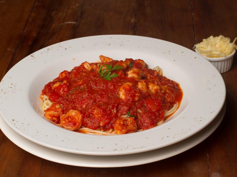 Forneto: Filé de camarão cozido em nosso tradicional molho de tomate da casa. Acompanha espaguete, penne ou capellini/ R$ 57,50/ Av. Dr. Antonio Gomes de Barros, Jatiúca