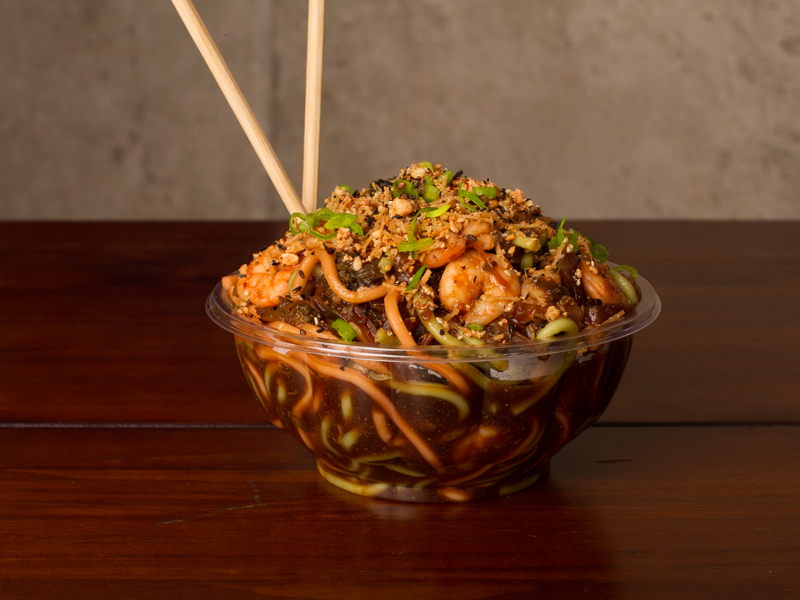 JapaBowl: Macarrão colorido Japabowl, molho de soja especial para yakisoba, legumes cozidos, gergelim torrado, amendoim e camarão/ R$ 30,00/ Rua Dep. José Lages, 405A Ponta Verde