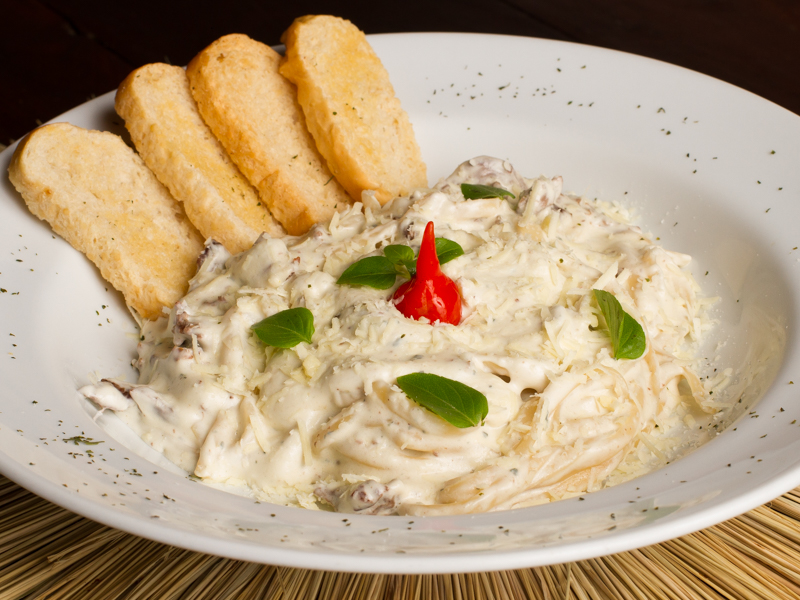 Lopana: Linguine com tiras de filé com molho de gorgonzola acompanhada de torradas (Individual)/ R$44,00/ Av. Sílvio Carlos Viana, 27 Ponta Verde