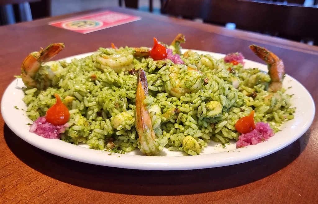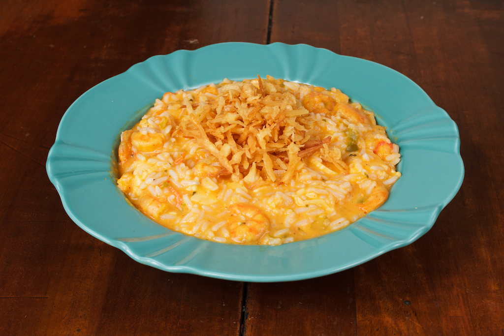Panelinha de arroz molhadinho com camarão refogado, pedacinhos de queijo mussarela e macaxeira palha. R. Dep. José Lages, 453 – Ponta Verde/(82) 3327-1970
