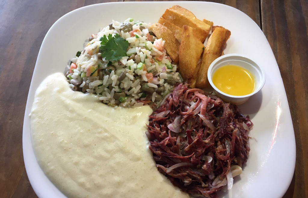 Charque desfiado com cebola roxa, baião de 2, pirão de macaxeira/ João R. Lima, 182 – Centro, Arapiraca-AL/ (82) 3522-3100