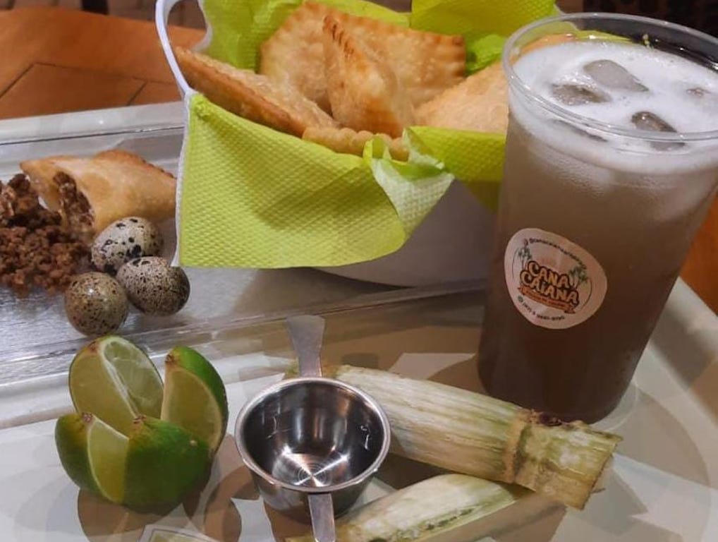Um drink de caldo de cana com cachaça e limão, e um porção com 6 unidades de pastéis de carne com ovo de codorna/ Rua Francisco Chagas, 182 – Alto do Cruzeiro, Arapiraca/ (82) 99623-5269