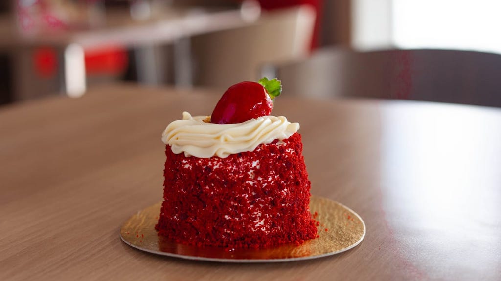 Bolo branco recheado com chocolate, geleia de morango e chantilly. Coberto com farelo de bolo red, morangos e crocantes de amendoim. Av. Empresário Carlos da Silva Nogueira, 595 – Jatiúca/ (82) 3325-7755