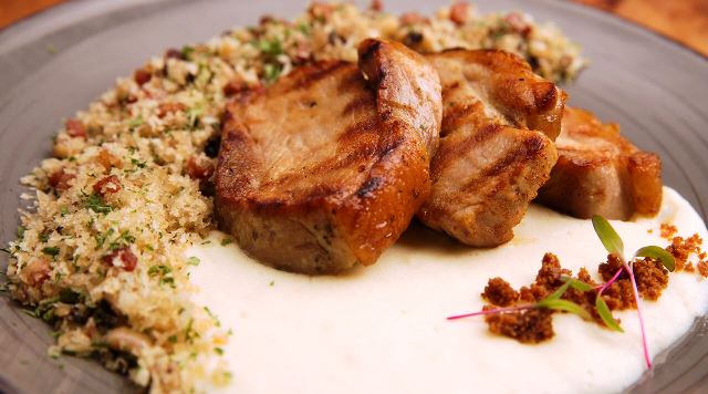 Picuí: picanha suína com pirão dos queijos coalho e de manteiga, e a inovadora farofa de feijão