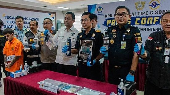 "Havia 2,3 litros de cocaína líquida armazenados em seis frascos de produtos de higiene. Por suas ações, o perpetrador foi acusado de acordo com a Lei Número 35 de 2009 sobre Entorpecentes com pena máxima de morte ou prisão perpétua.", disse o chefe da alfândega Soekarno-Hatta, Gatot Sugeng Wibowo.