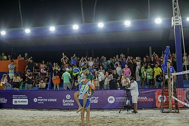 Com arquibancada cheia para 2;500 pessoas na Praia do Francês, em Marechal Deodoro (AL), a noite de sábado foi memorável para o Beach Tennis no torneio que marcou o recorde mundial com 1.702 atletas. Os brasileiros brilharam e levaram o título do Macena open, evento BT 400 com premiação de US$ 35 mil e um dos principais do circuito da Federação Internacional de Tênis.