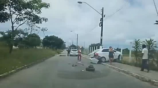 Mas em um segundo momento, ela teria voltado a ficar sobre a parte frontal do carro, momento em que o motorista arrancou em velocidade e terminou batendo em um outro automóvel que estava parado no canteiro da via. Com o impacto, a mulher for arremessada para o meio do asfalto e terminou ficando ferida.