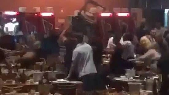 Vídeos enviados à reportagem mostram inúmeras pessoas brigando, inclusive usando cadeiras, e jogando os mesmos objetos sobre as mesas do estabelecimento. Em um trecho, é possível ver uma mulher se atirando sobre um homem, que depois levanta atordoado.