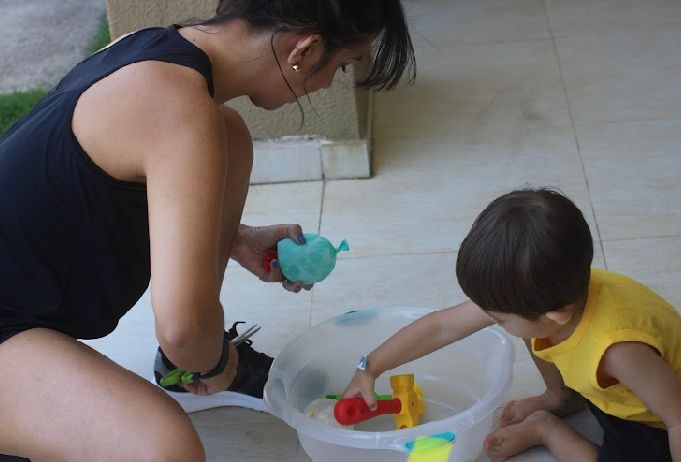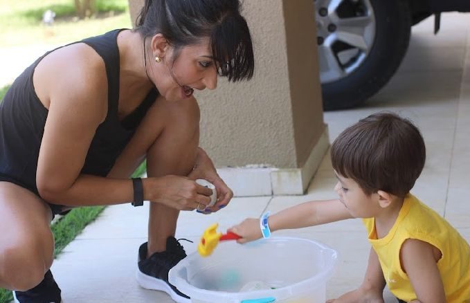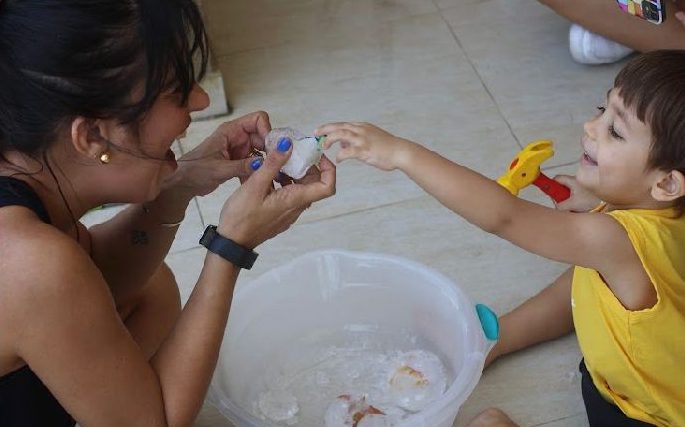 Com apenas 3 materiais você também vai poder fazer na sua casa para animar essa sexta-feira da semana da criança. Só precisa de: bola de assopro, um dinossauro de brinquedo e água.
