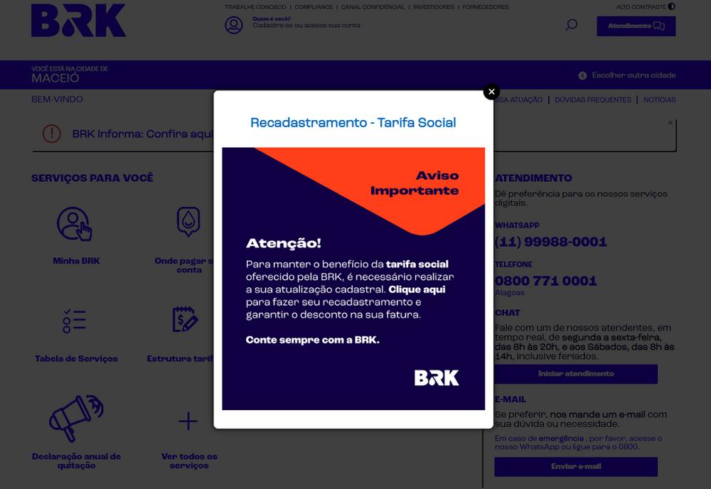 A partir do recebimento do comunicado da BRK, o cliente com direito à tarifa social tem um prazo de até 30 dias para a renovação do benefício. Caso não realize o recadastramento durante esse período, passará a ser faturado pela tarifa residencial vigente. É o que explica Aline Rampelotto, coordenadora de Relacionamento com o Cliente da BRK em Alagoas.