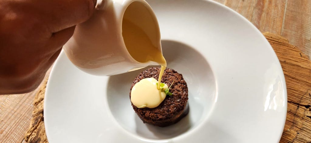 O jantar crudo de coco verde é outra receita da chef Denise, que faz, no capricho, pratos veganos. A carne de coco é bem temperada no molho de leite de tigre e apimentado. E o que dizer da lasanha de massa fresca, montada com camadas de molho bolonhesa de filé mignon e fonduta de grano padano, perfeito, e apenas peça para ser feliz. De sobremesa fiquei fã do bolinho de chocolate com creme inglês.