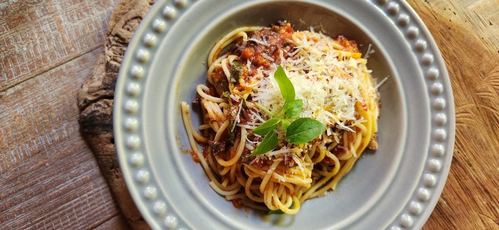 Espaguete à putanesca são maravilhosos, com molho de tomate, azeitona, alcaparra e sardinha.