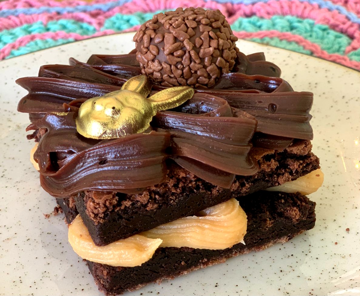 Quem ama brownie, aquele docinho com casquinha crocante e com massa de chocolate bem macia, pode encomendar um para chamar de seu na Páscoa. Dani Franco (@confeitariadanifranco) criou o ovo de Brownie, que, além de lindo, é saboroso em todos os detalhes: metade do ovo é do bolo, quem vem recheado com 25% de chocolate ao leite belga e 25% de brigadeiro de chocolate ao leite. Os fãs desse doce americano, simplesmente, vão enlouquecer.