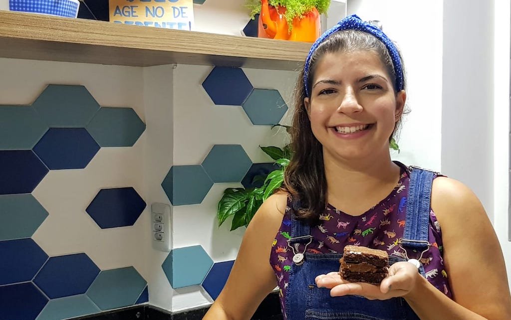 Quem faz – A alagoana Ana Maria, conhecida como Carol, é design de interiores, mas sempre gostou de cozinhar. Chegou a fazer e vender sanduíches na escola, e agora profissionalmente investiu no brownie funcional.
